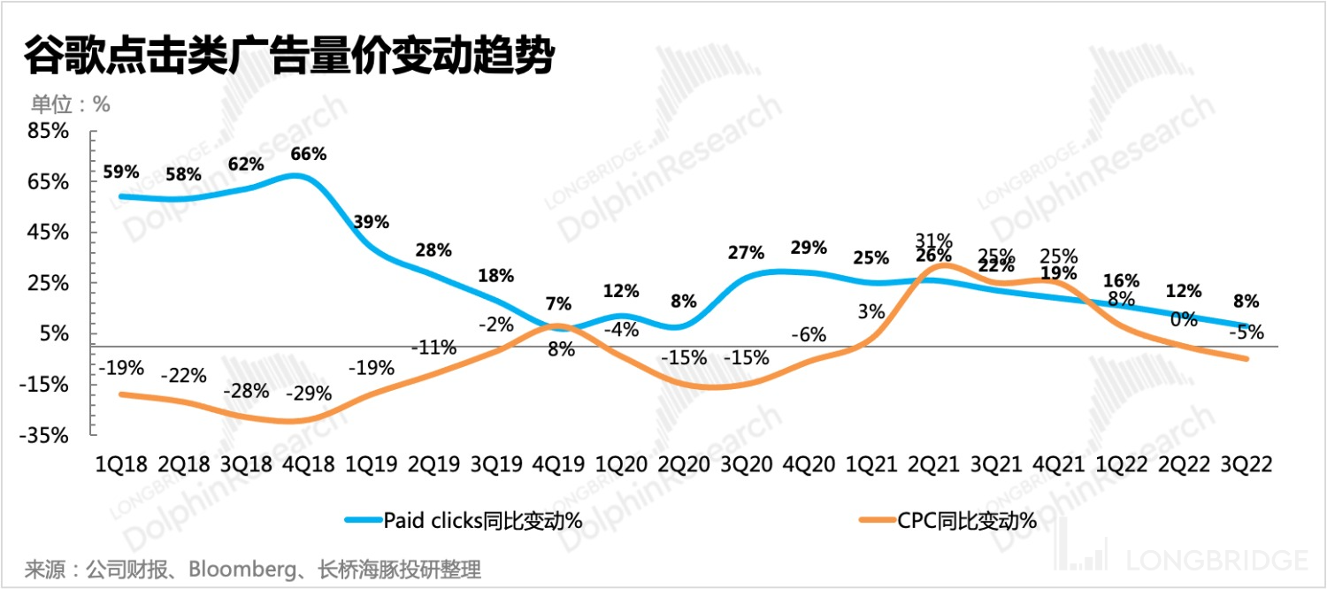 面对相关行业热度消减以及短视频的竞争,Meta 以更激进的广告库存释放来缓解报价端的压力。三季度 Meta 北美广告收入下降反而相比二季度有所缓解。目前来看 Google 还相对佛系,但可以预料的是,当四季度天气寒冷,旅游出行需求变弱而导致搜索广告不再有明显增长优势时,可以想见Google 也会走上靠释放广告库存来缓解收入增长压力的老路。