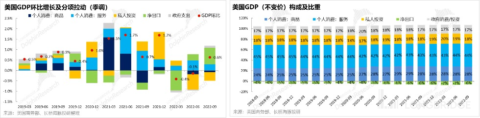 海豚君在每周的策略周报中一般会对当下中美宏观经济进行详尽分析,最新美国三季度经济数据的解析可详见《政策转向预期背后:强美元拉动的 GDP 靠得住吗?》