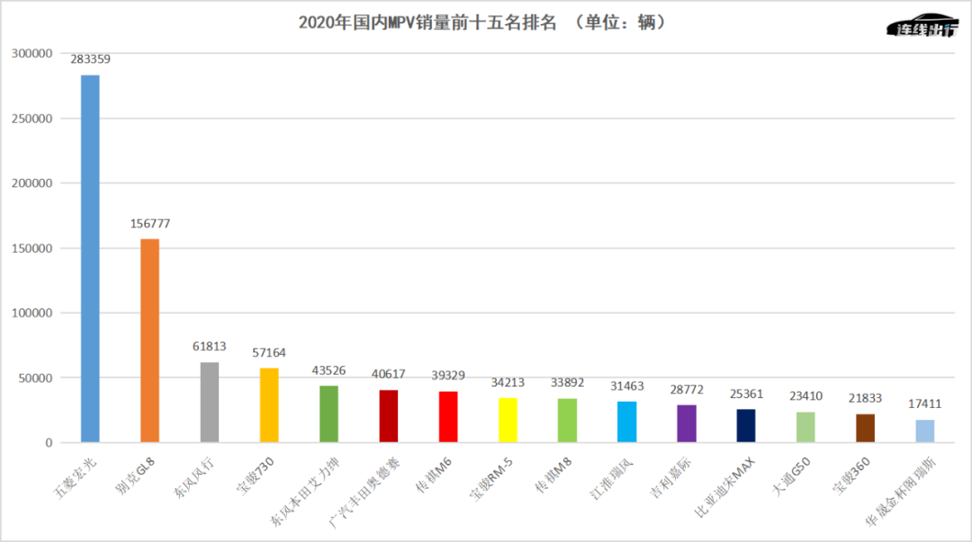 *2020年国内MPV销量前十五名排名,数据来源于乘联会,连线出行制图 *