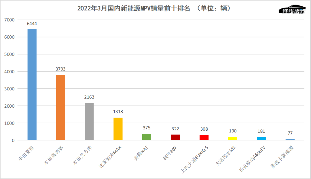 *2022年3月国内新能源MPV销量前十排名,数据来源于乘联会,连线出行制图 *