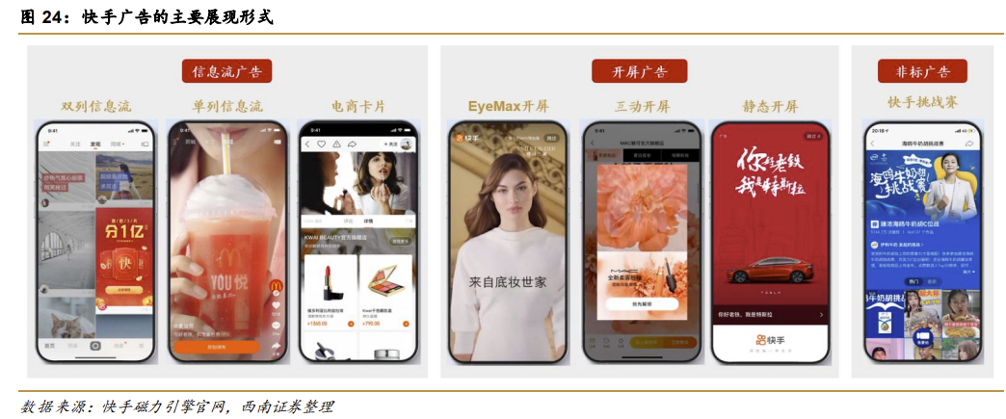 目前,快手将广告收入分为外循环广告和内循环广告两部分。外循环广告指的是外部商家的流量广告费,内循环广告则是快手生态内的商家、主播的流量广告费,以及电商的交易佣金。