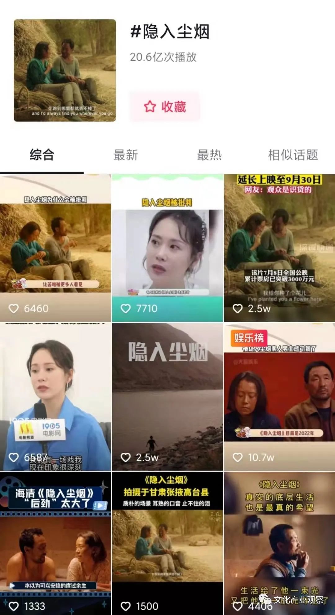 上映24天的《明日战记》票房平平,口碑一般,然后在古天乐哭惨视频发出之后,票房逆跌,从4.5亿涨到7亿以上。国产小成本文艺片《隐入尘烟》在上映之初,票房仅有三十余万,上映一个月后,票房也只有小幅度的增长,但自从抖音上开始出现影片解读和文案解说之后,其票房口碑迅速上涨,《隐入尘烟》最终票房成绩成绩接近4000万元。