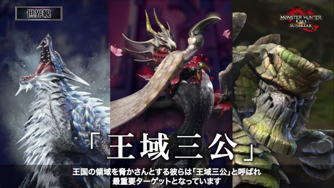 其中最受瞩目的莫过于被称为“王域三侯”的三只新怪物:冰狼龙、刚缠兽和爵银龙。考虑到《曙光》的故事背景从和风浓郁的“炎火村”搬到了从名字到美术风格都很西式新调查据点“埃尔迦德”,三只怪物的设计也显然参照了西方文学中的经典角色:冰狼龙对应狼人,刚缠兽对应弗兰肯斯坦,爵银龙则对应吸血鬼。