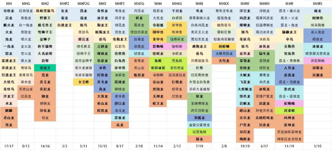 B站UP主(ID:Qiao哥)整理的怪猎历代登场怪物列表