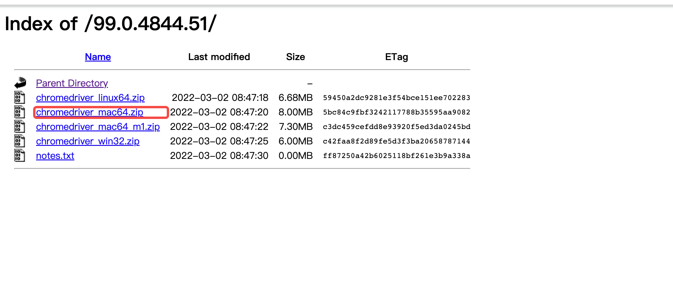 打开chromedriver 下载地址,找到与自己浏览器匹配的版本