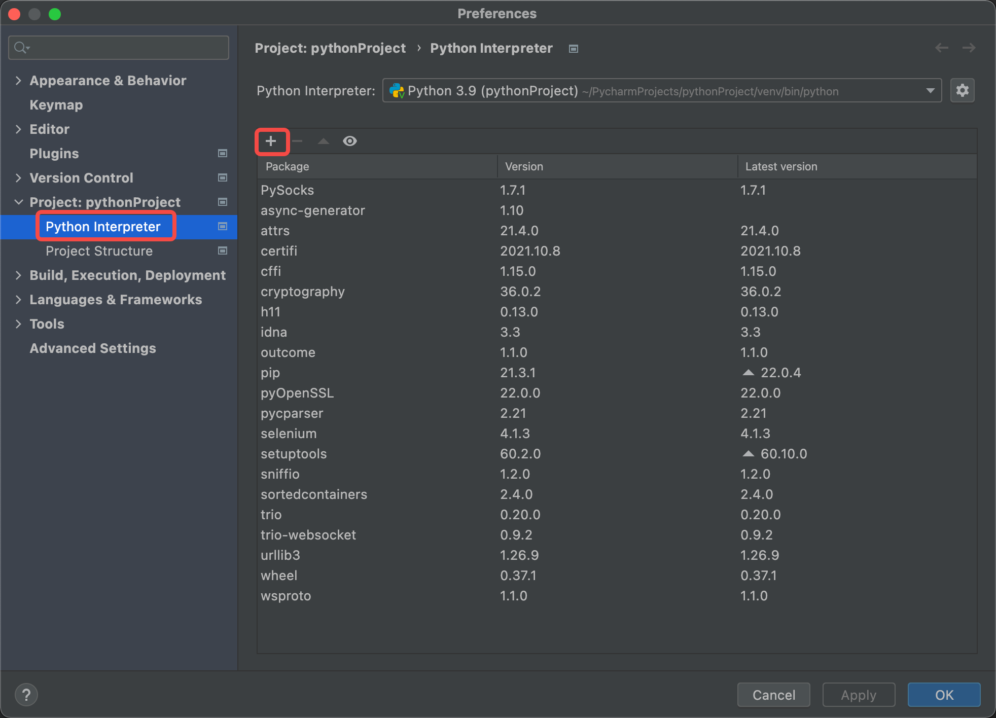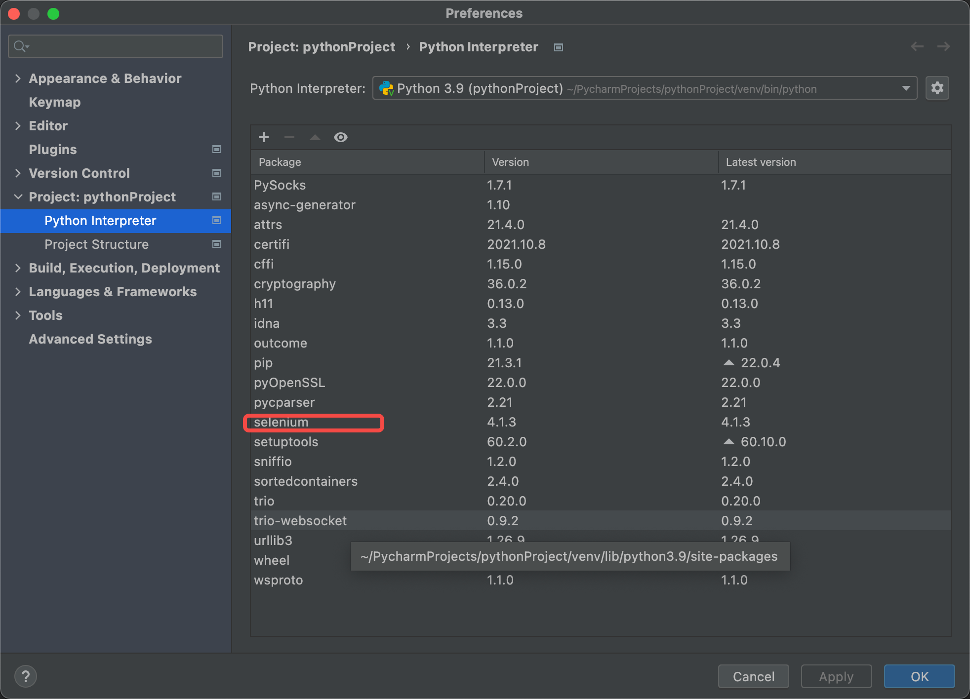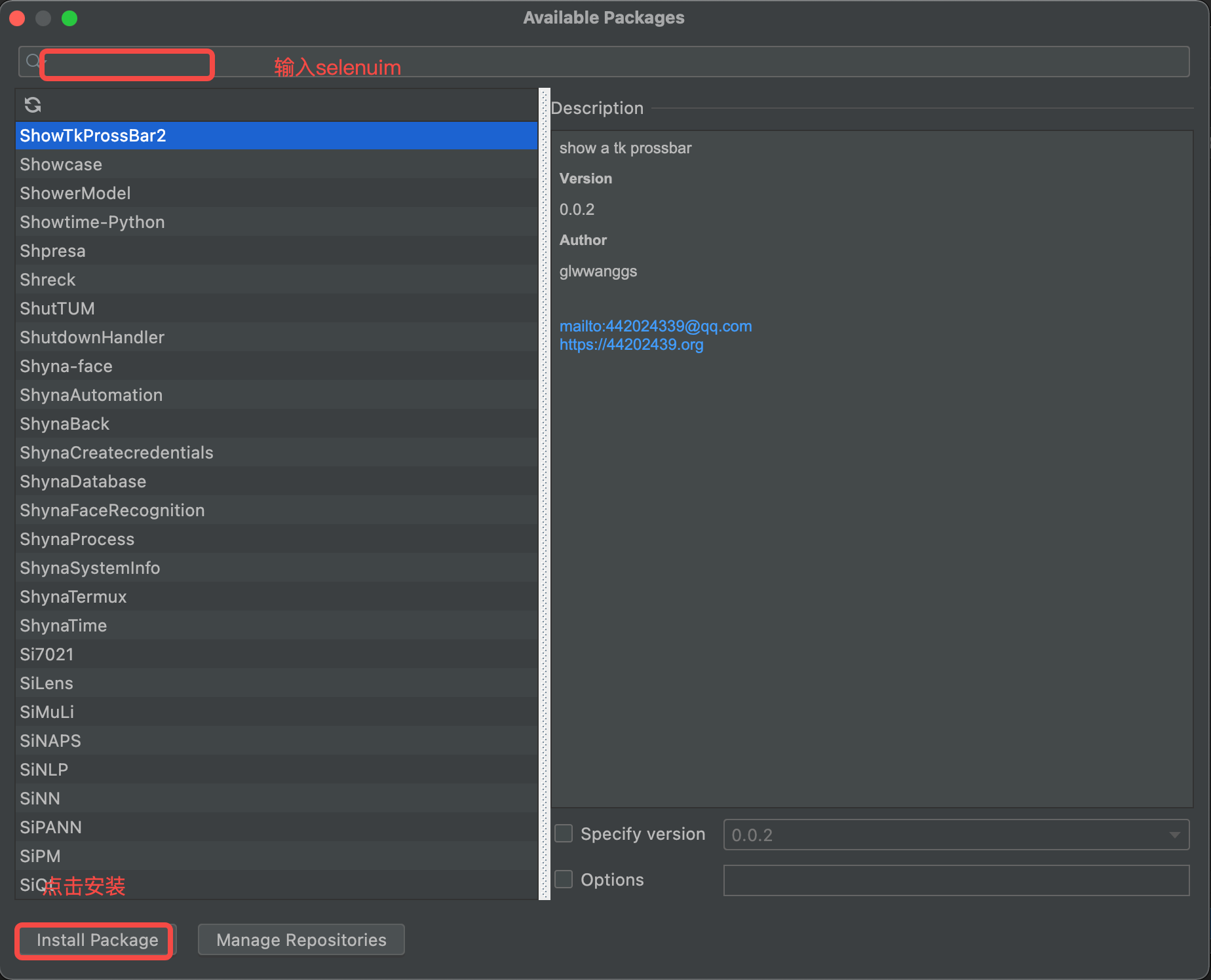 输入框中输入selenium 然后点击install package进行安装,时间可能需要几十秒