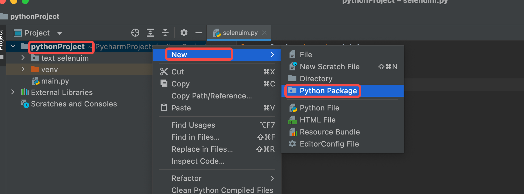 右键——New——Python Package,命名弹窗出现后,输入项目名称