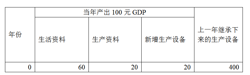 此外,再假设这个国家还继承了上一年留下的现有生产设备,假设这些设备的价值是400元。
