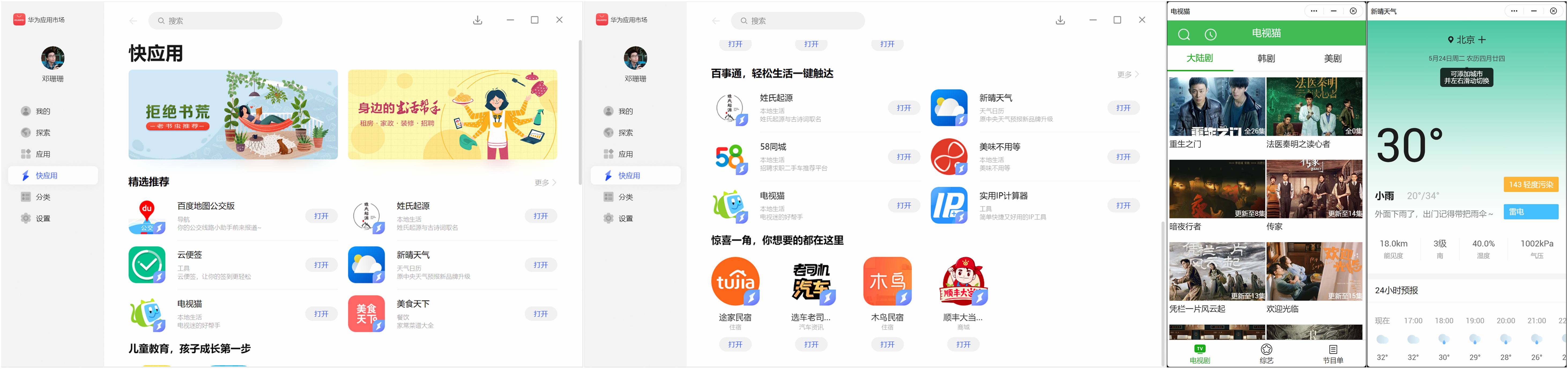 系统应用商店内还提供了“快应用”,这个之前只在安卓移动设备中出现的分类,被华为移植进PC生态当中,即开即用的体验配合触控屏,仿佛一下子就将PC变成了平板电脑。目前快应用的数量还不是很多,相信华为也会不断更新,使其能够覆盖外卖、电商等应用。