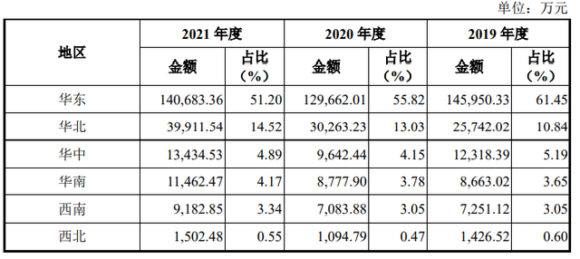 五芳斋的招股书也给出了相同的结论。报告期内,公司主营业务收入中来源于华东地区的收入占比分别为 61.45%、55.82%和 51.20%。尽管占比有所下降,但华东地区的收入还是稳占半壁江山。