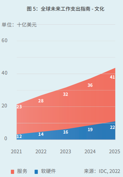 钛媒体App 2月14日消息,联想联合咨询机构IDC发布《“超时空”智慧办公白皮书》(以下简称“《白皮书》”),并预测,工作模式的变化将带来对企业文化领域的支出增长。预计到2025年,全球未来工作文化领域的支出将超过600亿美元,其中服务相关的支出占据主要部分,将达到410亿美元;软硬件领域将达220亿美元。