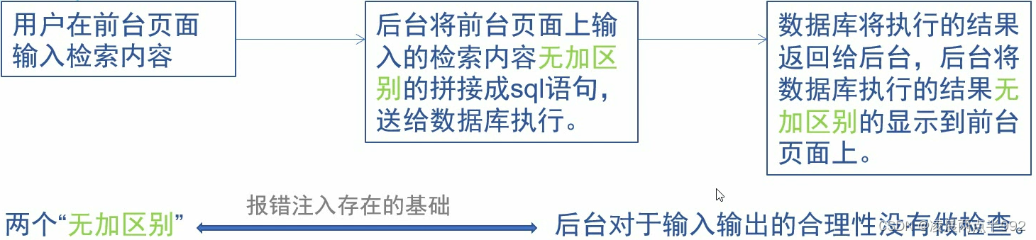 构造查询语句,让错误信息中夹杂可以显示数据库内容的查询语句。从而放会报错提示中包含数据库中的内容。
