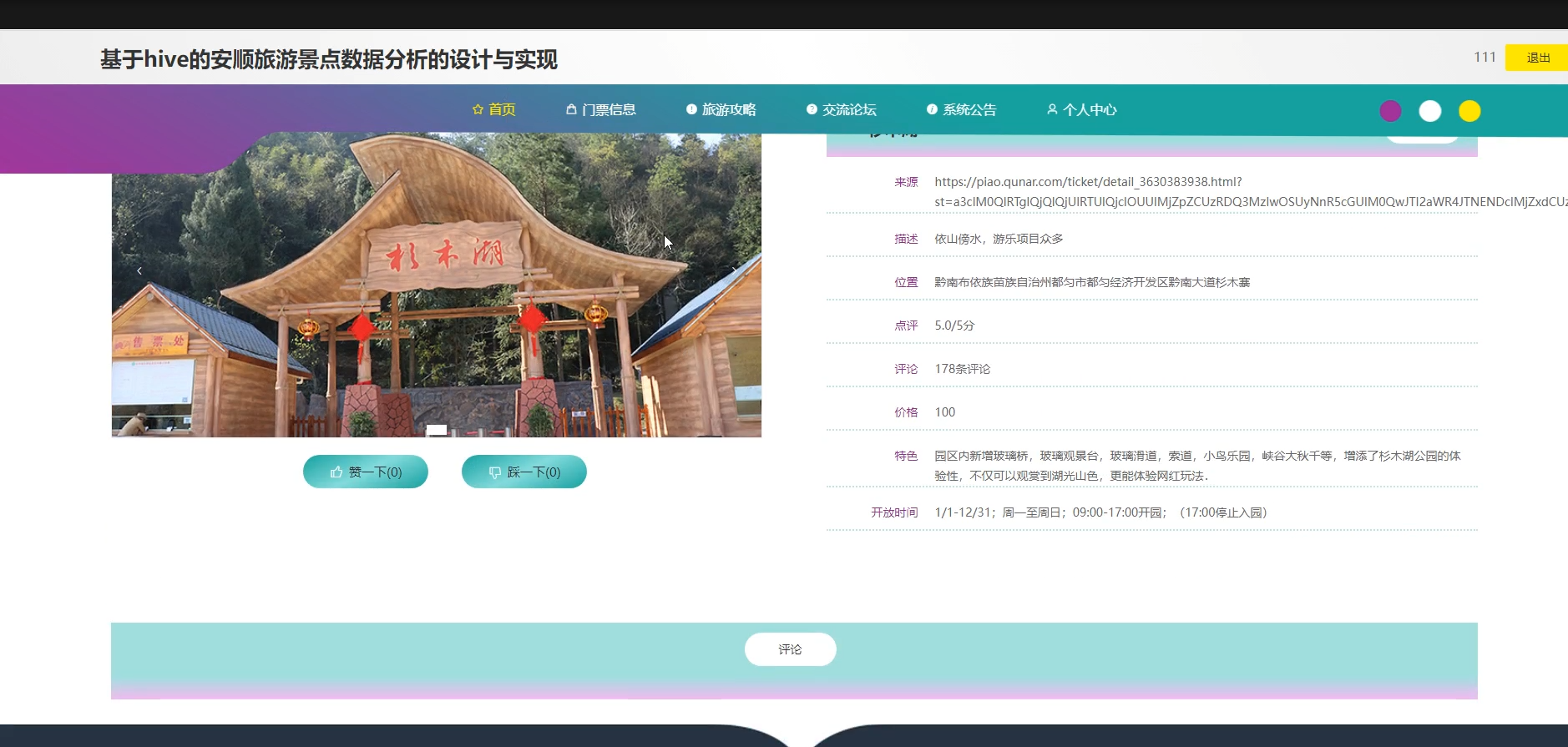 背景介绍:基于Hive的安顺旅游景点数据分析的设计与实现