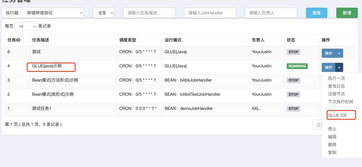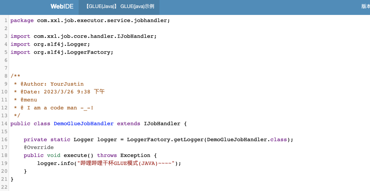 - GLUE模式 Glue支持Java、Python、PHP…等十来种任务模式。 1.下面示例添加Glue模式(java)