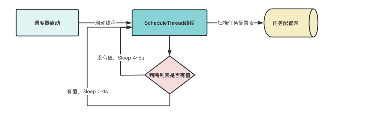 调度中心第一件事就是启动scheduleThread线程来扫描任务配置表,并判断当前任务是否应该触发。