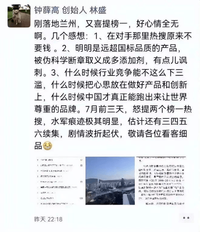 在此次被大众冠为“雪糕刺客”之后,林盛也没有丝毫反思,反而暗示是竞争对手所为,“在对手那里原来热搜不要钱”,“水军痕迹明显”,“什么时候行业竞争不这么下三滥”——这种指桑骂槐,必然也会导致大量网友“对号入座”,本来起哄吃瓜,却被戴上“水军”之名,必然会加深用户的敌意和反感。