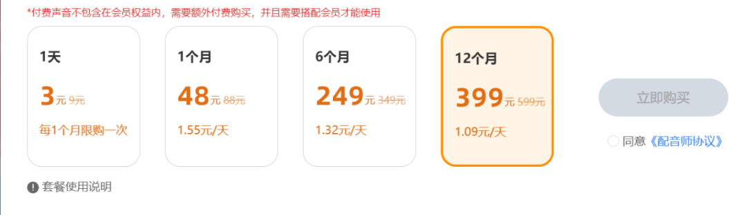 有了这门技术,一门生意就出现了。为了让这些声音变现,魔音工坊建立了声音商店,用户可以按天/月/年付费。