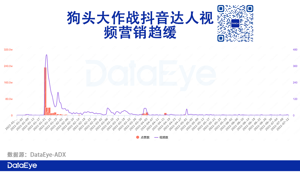DataEye-ADX数据也显示,《狗头大作战》抖音效果型达人视频营销力度趋缓。