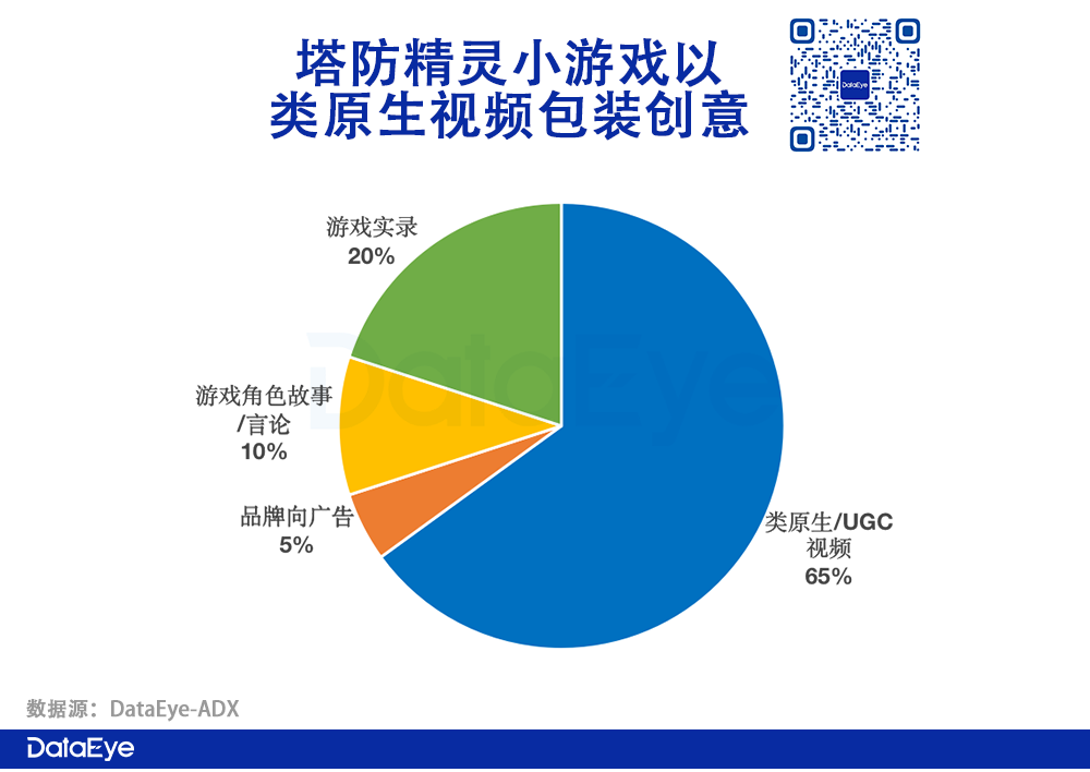 《塔防精灵》小游戏由于主投抖音,主要以类原生视频包装创意,以融入抖音视频环境中,避免用户的广告抵触心理。