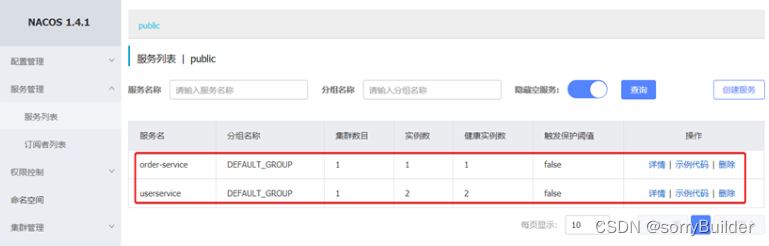 重启微服务后,登录nacos管理页面,可以看到微服务信息。