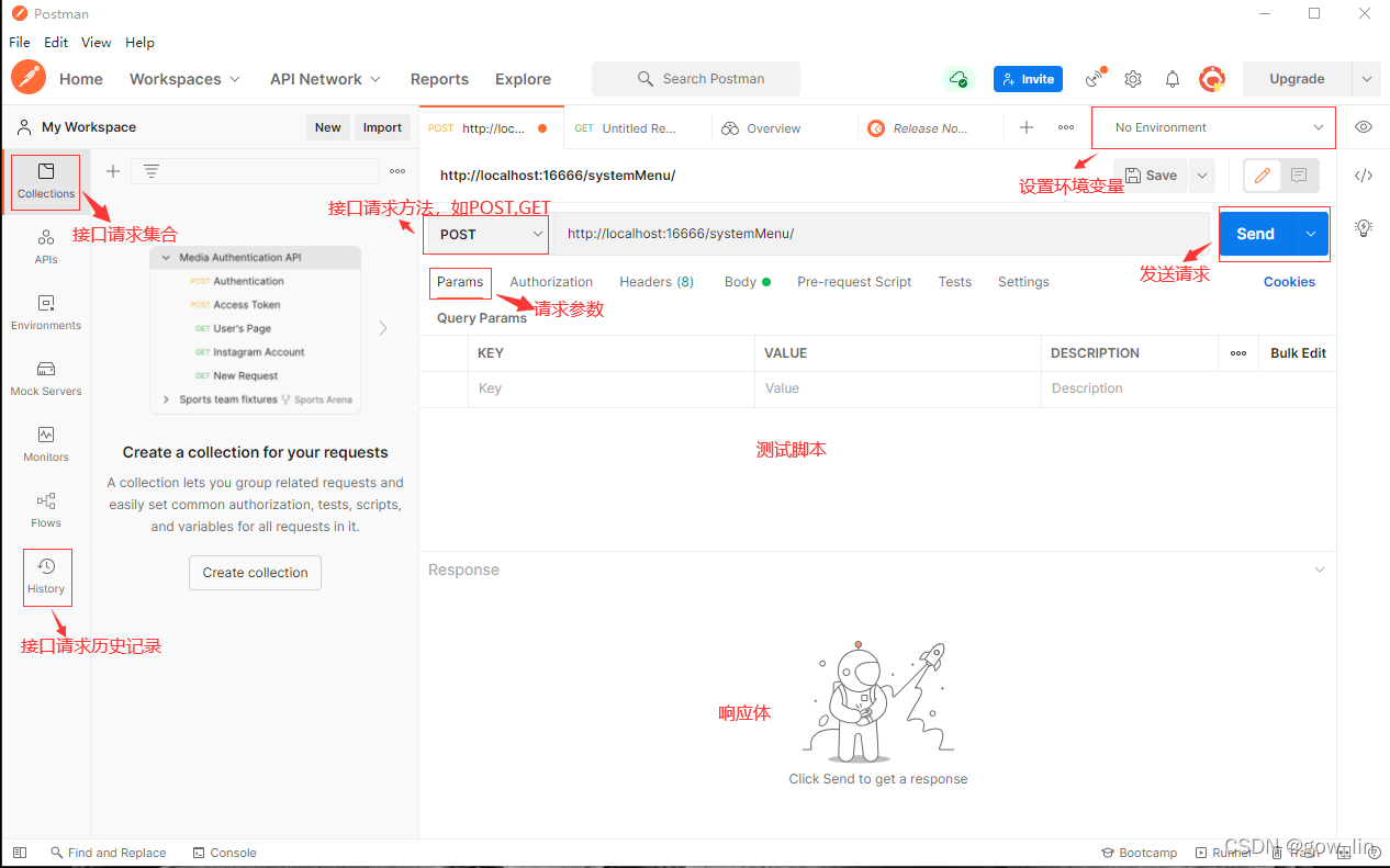 Postman是一个接口测试工具,在做接口测试的时候,Postman相当于一个客户端,它可以模拟用户发起的各类HTTP请求,将请求数据发送至服务端,获取对应的响应结果, 从而验证响应中的结果数据是否和预期值相匹配;并确保开发人员能够及时处理接口中的bug,进而保证产品上线之后的稳定性和安全性。 它主要是用来模拟各种HTTP请求的(如:get/post/delete/put..等等),Postman与浏览器的区别在于有的浏览器不能输出Json格式,而Postman更直观接口返回的结果。