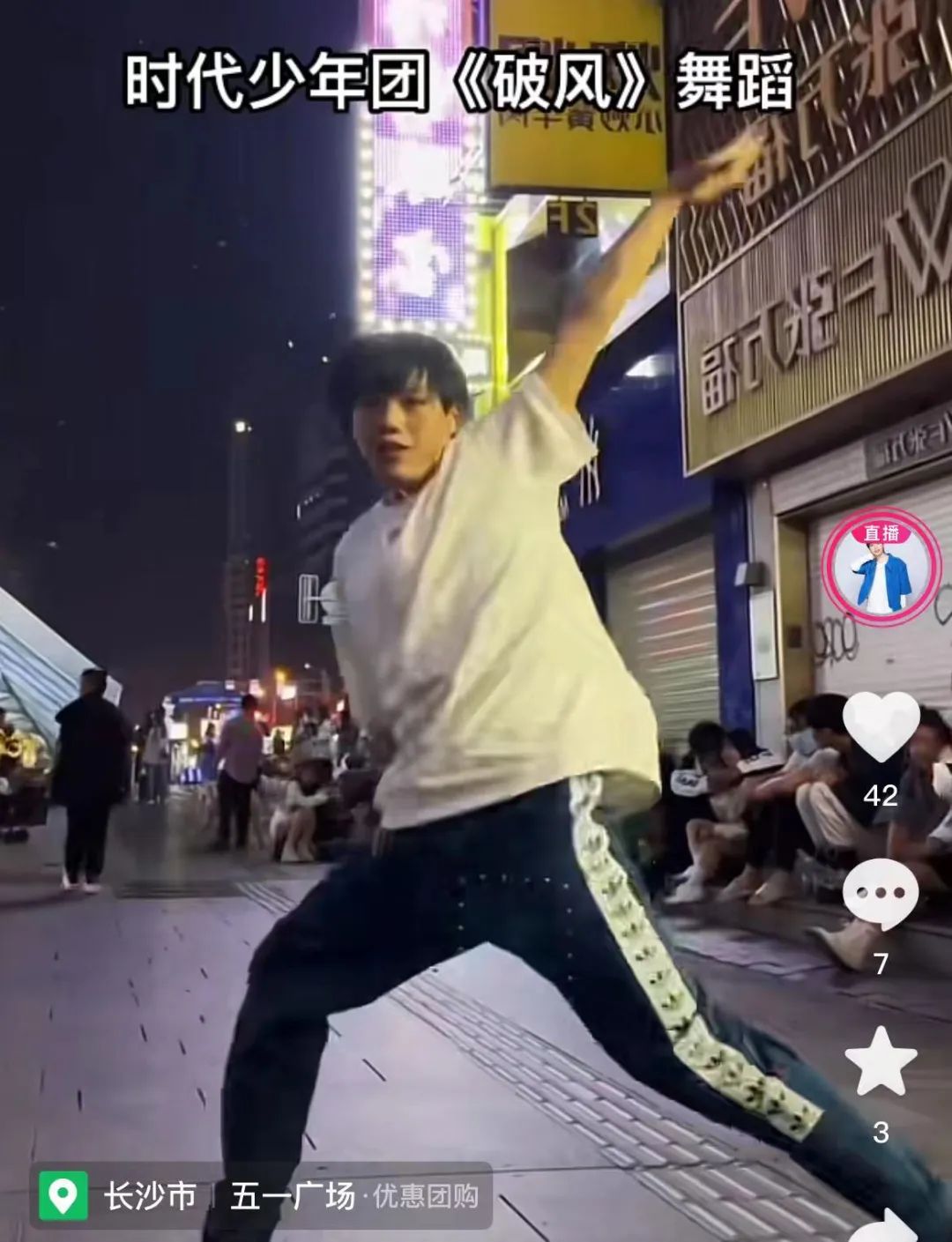 TS天团的舞蹈担当刘凌硕(原名华晨灰)仍然在长沙街头直播跳舞,每天发布几十条舞蹈视频,但这些作品的互动数据奇差,点赞和收藏仅有几十个,评论区零星有点声音,吐槽居多。硬糖君特意看了他的直播,在线观众基本是个位数。