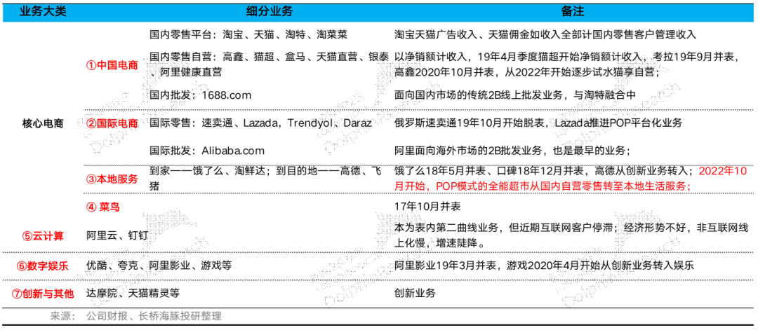 海豚君把阿里最新业务做了分类整理,方便大家在看解读的时候,随时回溯,红色为最新的披露列示条目。