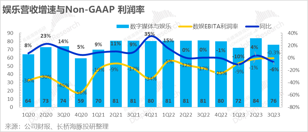 阿里大文娱这个季度收入再次缩水,只有76亿。阿里影业由于疫情应该基本没有票房收入,而优酷四季度又基本没有一个像样的电视剧,收入增长直接转为-6%。