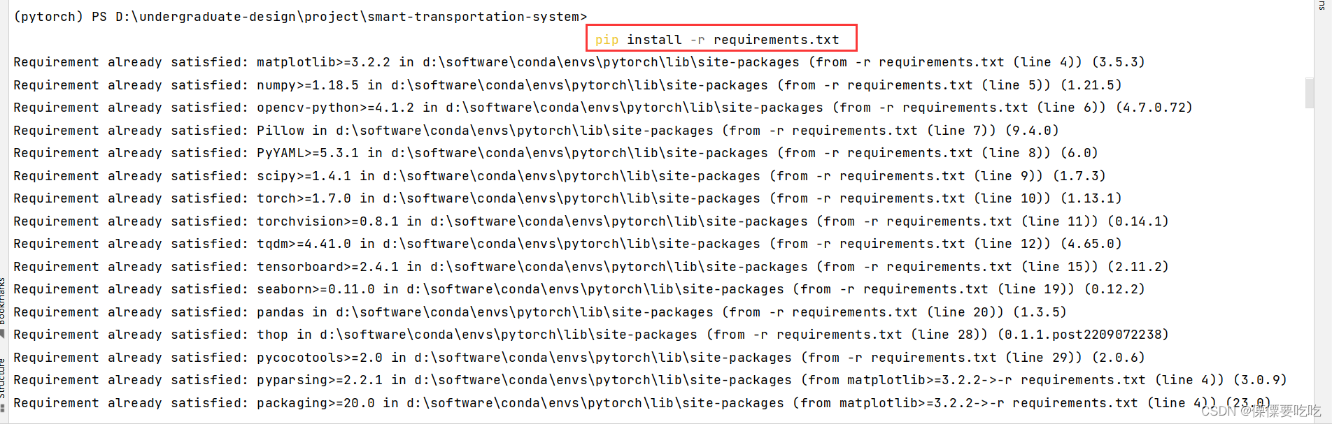 当将所有包都写入到 requirements.txt 文件中后,终端输入命令: pip install -r ./requirements.txt 即可一键自动下载文件中的所包,已存在的会覆盖下载;