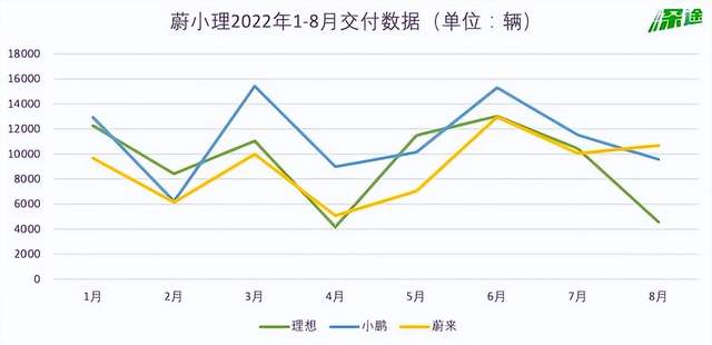8月交付新车4571辆,相比7月减少56%,这一数据只比受芯片断货和疫情影响的4月份稍微好上一点。如果算排名,理想要排到第七,极氪和问界这俩后起之秀都比它交付得更多。