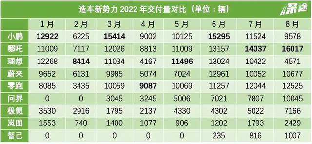 哪吒是8月的销冠,16017台的交付数据,再创造车新势力交付新高,此前表现最好的小鹏也只是刚卖过1.5万。