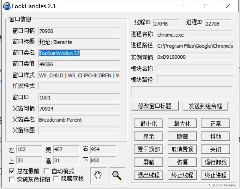 错误方法2:dialog["ToolbarWindow32"].click() 改成:dialog.window(title_re=".地址.")[0].click()