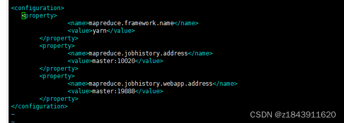 <configuration> <property> <name>mapreduce.framework.name</name> <value>yarn</value> </property> <property> <name>mapreduce.jobhistory.address</name> <value>master:10020</value> </property> <property> <name>mapreduce.jobhistory.webapp.address</name> <value>master:19888</value> </property> </configuration> 修改环境变量