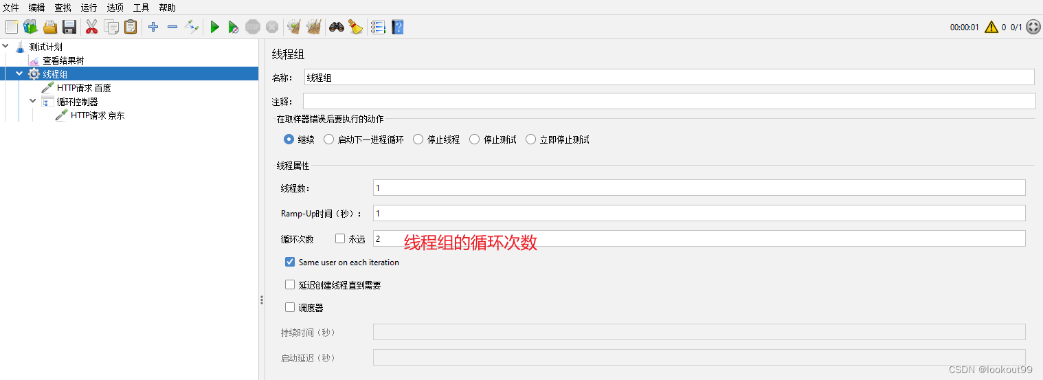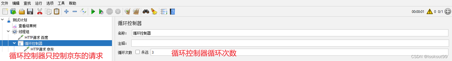 位置:测试计划-->线程组-->逻辑控制器-->循环控制器