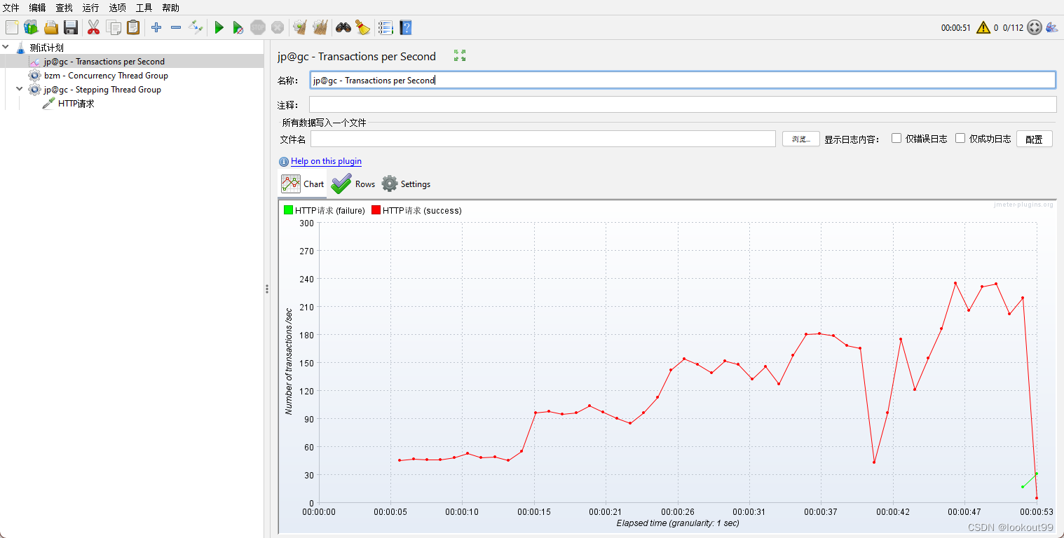 位置:测试计划-->线程组-->监听器--> Transactions per Second