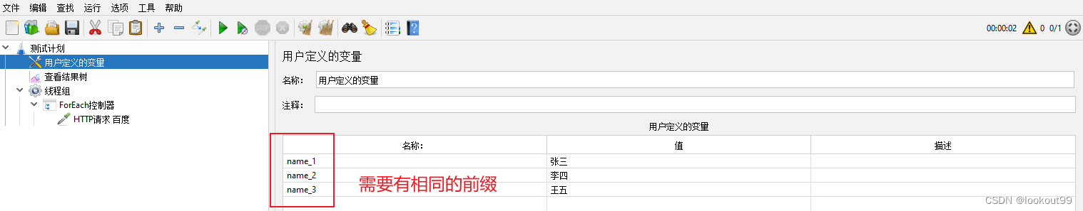 作用:一般和用户定义变量或者正则表达式提取器一起使用,读取返回结果中一系列相关的变量值