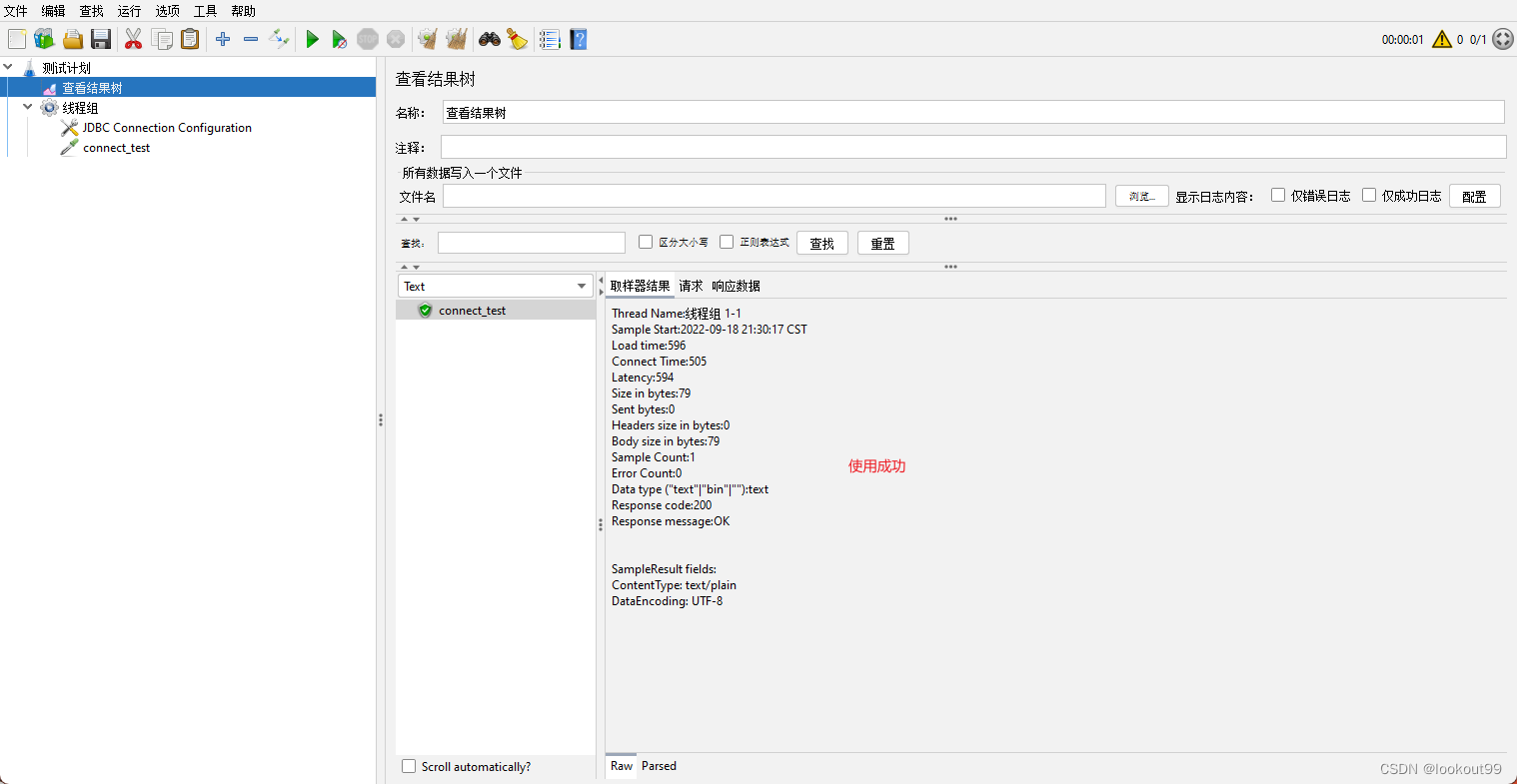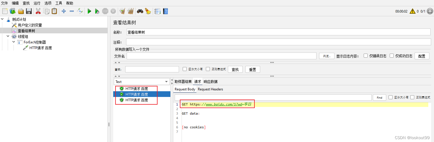 作用:察看结果树:收集性能测试结束后,接口的请求响应信息(请求url,请求参数,请求头,响应头,响应数据等)