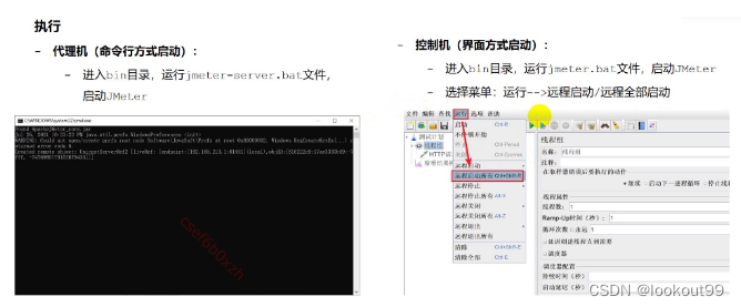 - 代理机拿到脚本后就开始执行,代理机执行时不需要启动JMeter界面,可以理解它是通过命令执行的。