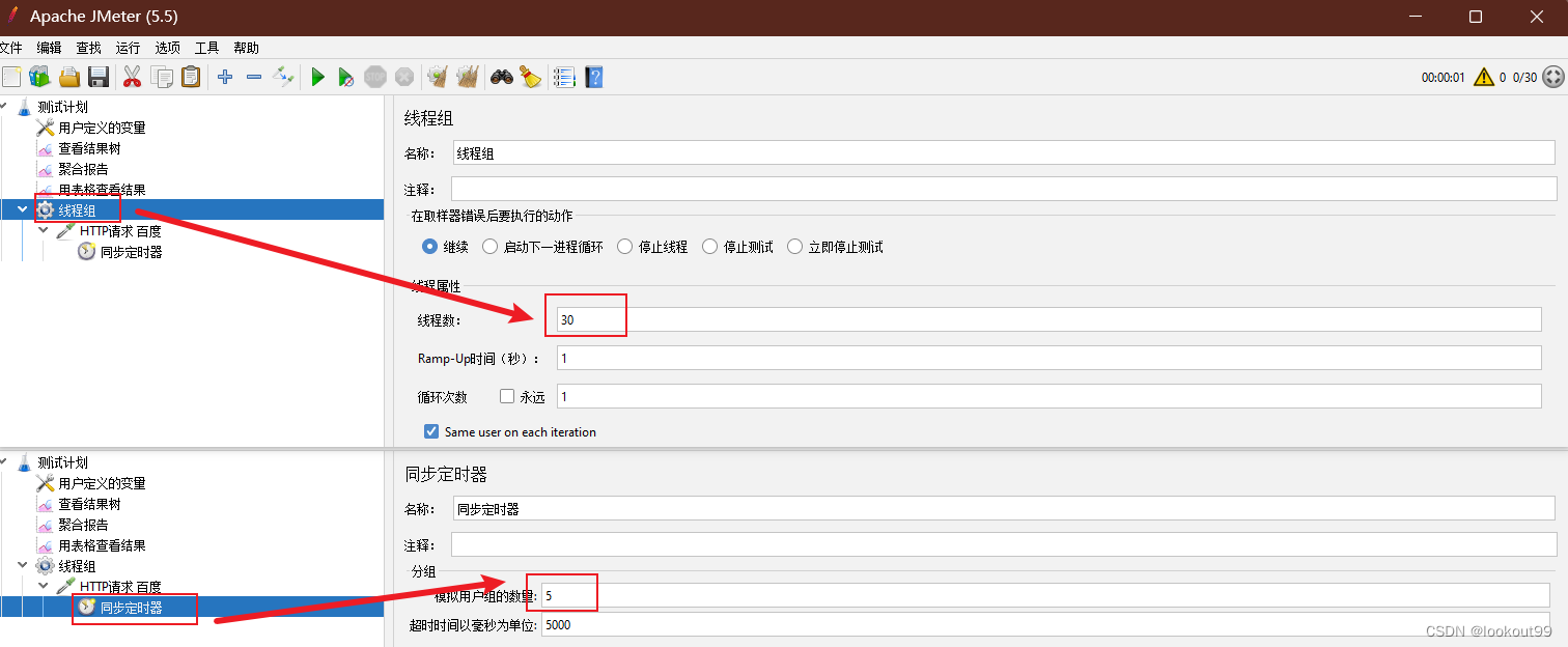 定义:同步定时器:堵塞线程(积累一定的请求),当在规定的时间内达到一定的线程数量,这些线程会在同一个时间点一起释放,瞬间产生很大的压力