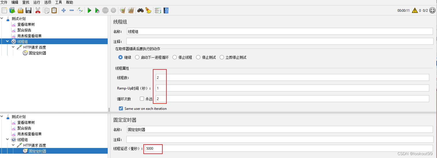 位置:测试计划-->线程组-->http请求-->定时器-->固定定时器