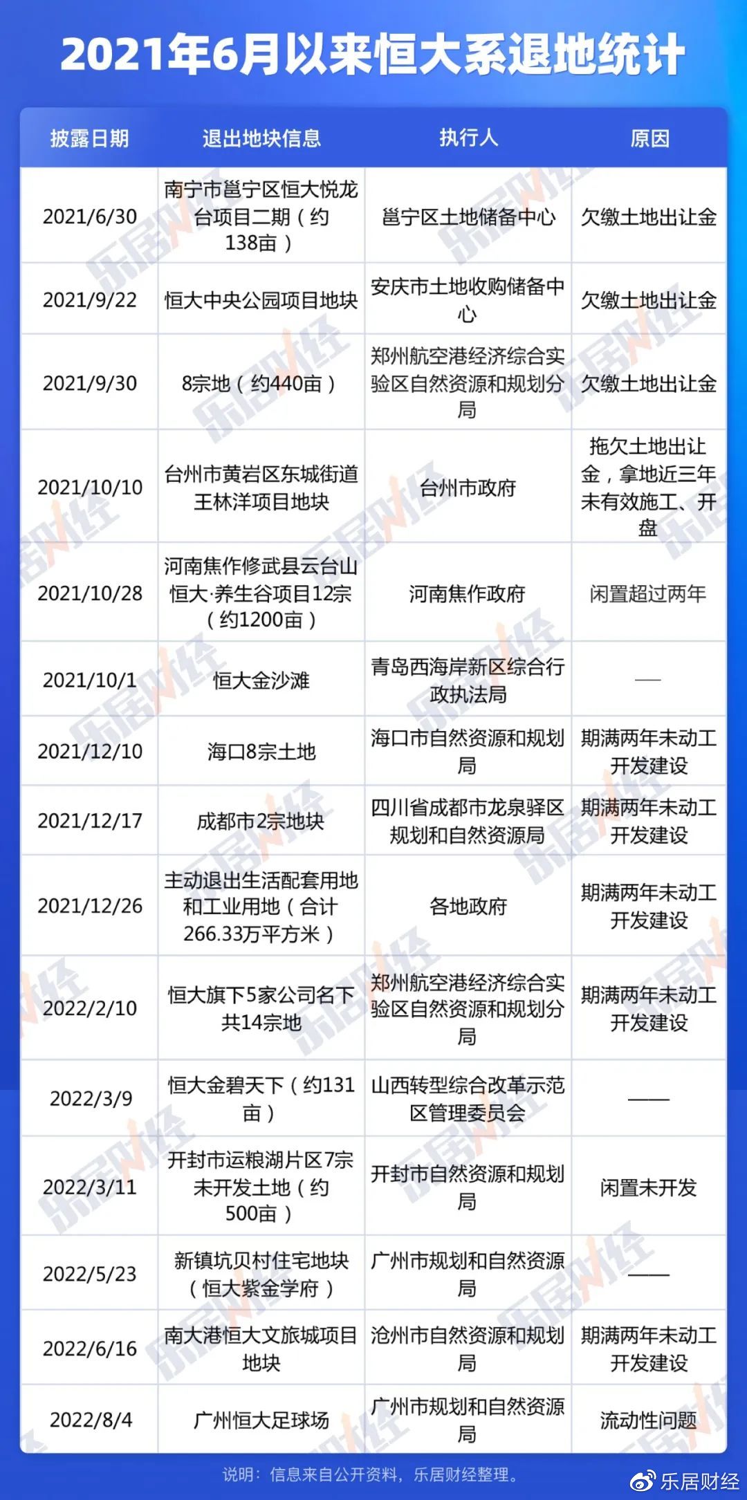 恒大暴雷后,有关其退地或是土地被收回的消息就没断过,去年下半年以来尤为密集。