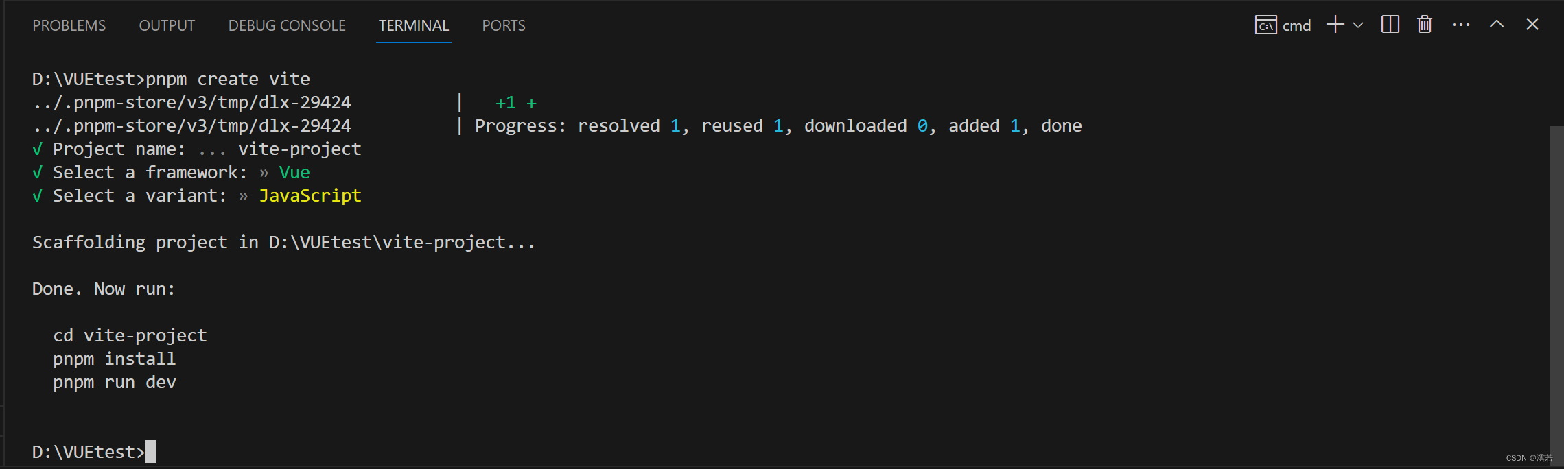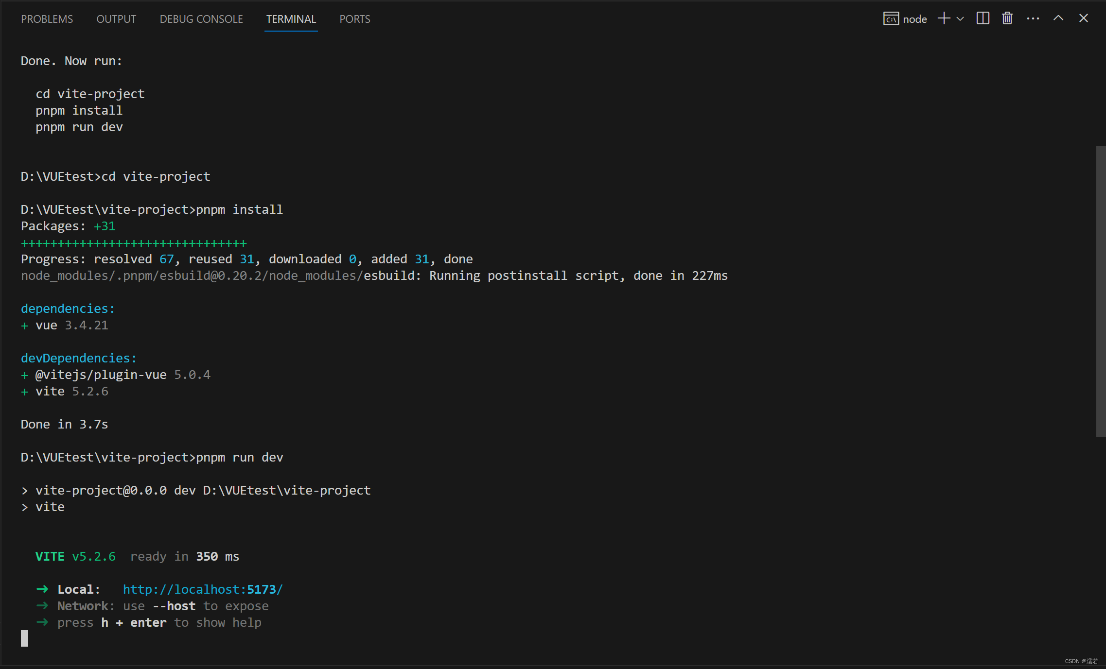 8、按照提示依次cd进项目目录、pnpm install、pnpm run dev即可运行项目