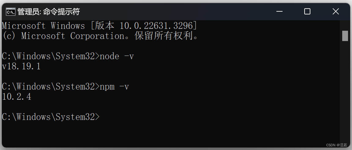 (3)查看node.js是否安装成功:打开cmd,输入node -v 和 npm -v 如果显示版本信息,则说明安装成功。如下图: