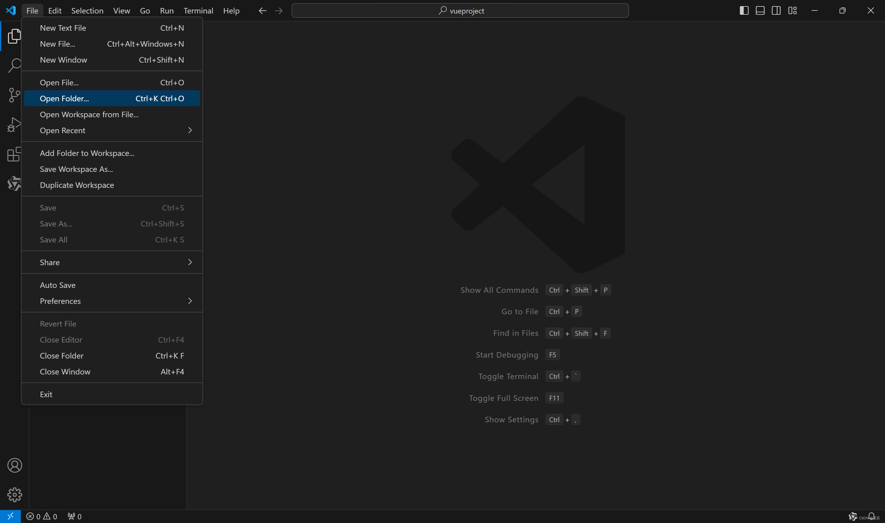 1、在电脑上创建一个项目目标文件夹,然后用VSCode打开这个文件夹。