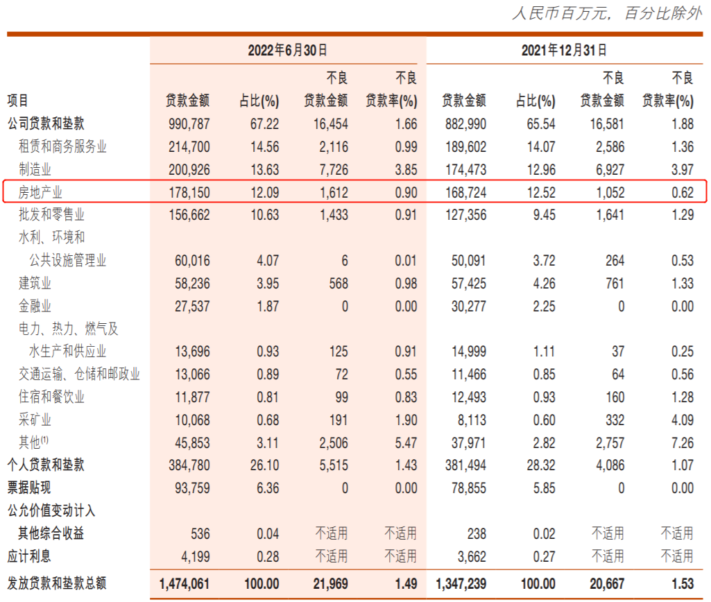 2022年半年报显示,报告期内,浙商银行房地产贷款余额1781.5亿元,房地产业贷款占比达到12.09%。