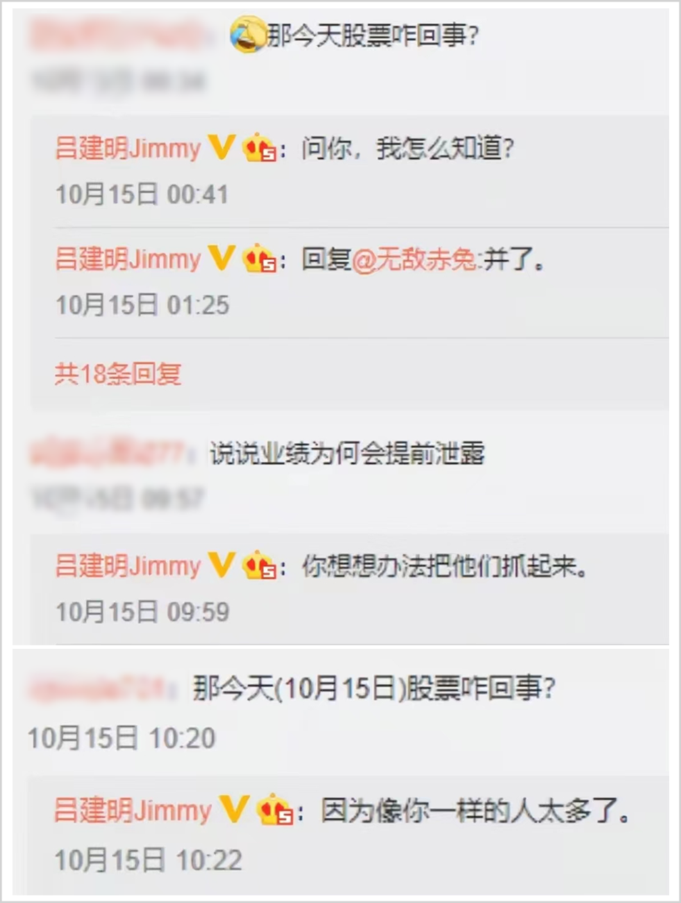 原来他们顾及面子,现在把偶像包袱一扔,火力全开,投资者根本不是对手。骂的最狠、最难听的,还得是吕建明。别的企业高管大多阴阳怪气,他直接开撕,言辞粗鄙,不堪入耳。