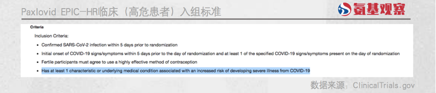 其次,对于没有基础疾病的普通人来说,Paxlovid并没有太好的治疗效果。上述提及的EPIC-HR临床,针对的是高风险人群,例如伴有高龄、慢性肾脏疾病、糖尿病、心血管疾病、慢性肺病等重症高风险因素。