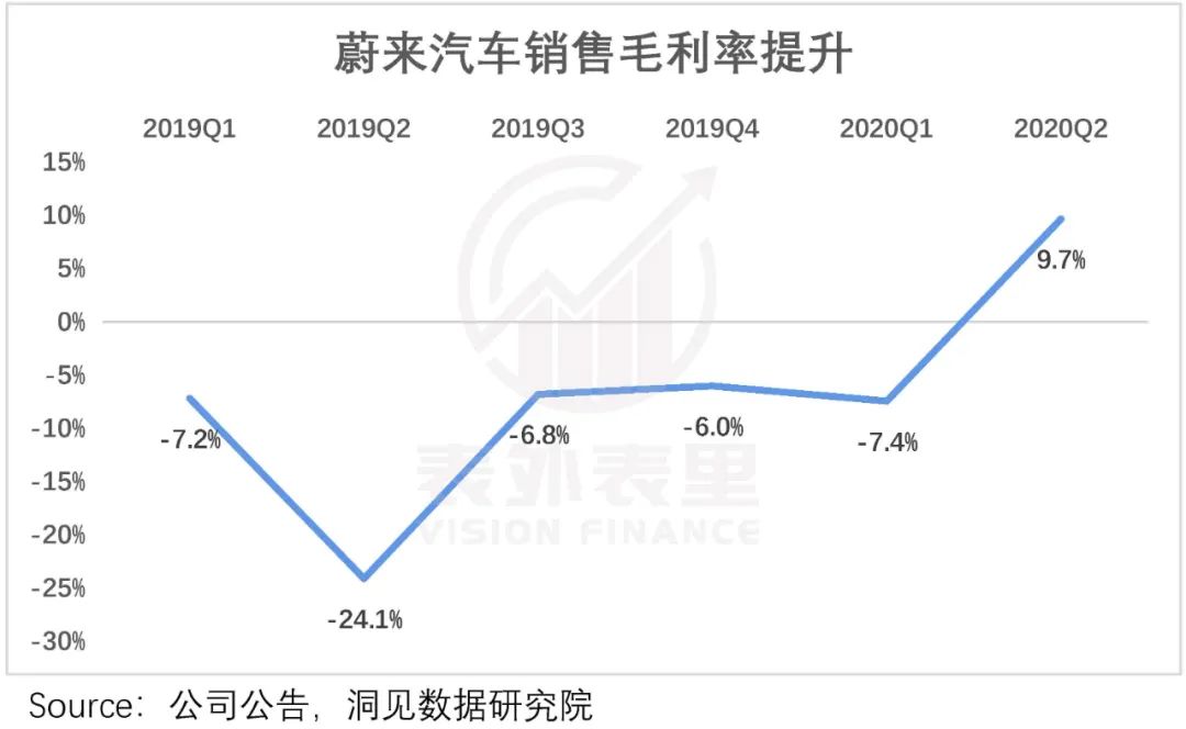 因此,在ES6于2019年6月开始交付之后,蔚来的汽车销售毛利率有明显好转。