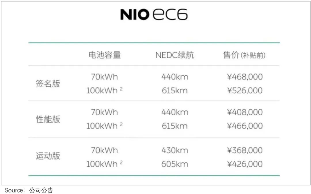 蔚来此次推出EC6,一方面是进一步让ES6扩充更广的用户,另一方面是阻击特斯拉(还没交付)的Model Y。