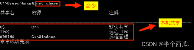 🍉收集到这些信息后就可以利用起来,比如:查询网络配置信息,用户列表,操作系统和安装软件的版本信息,端口列表,补丁列表,防火墙配置,查询并开启远程连接服务。关闭 防火墙,开启 3389 端口,当前权限查询指定账户的详细信息,获取域密码信息,域内置本地管理员组用户等等信息。收集到这些内网信息之后进行下一步渗透,可以帮助我们 拿下整个内网计算机.